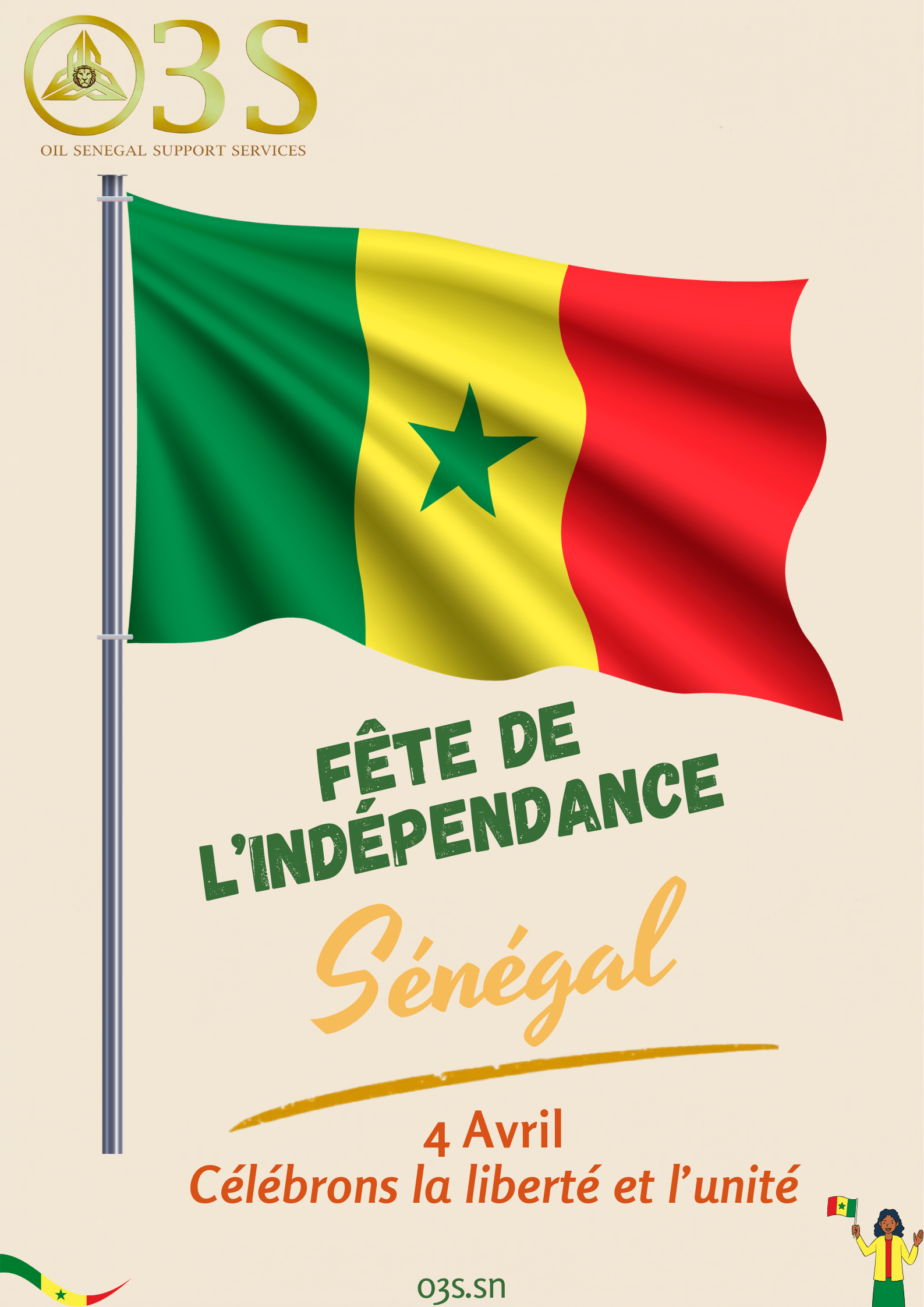 À l’occasion du 4 Avril, Oil Senegal Support Service (O3S) célèbre la Fête de l’Indépendance du Sénégal et adresse ses meilleurs vœux à tous.